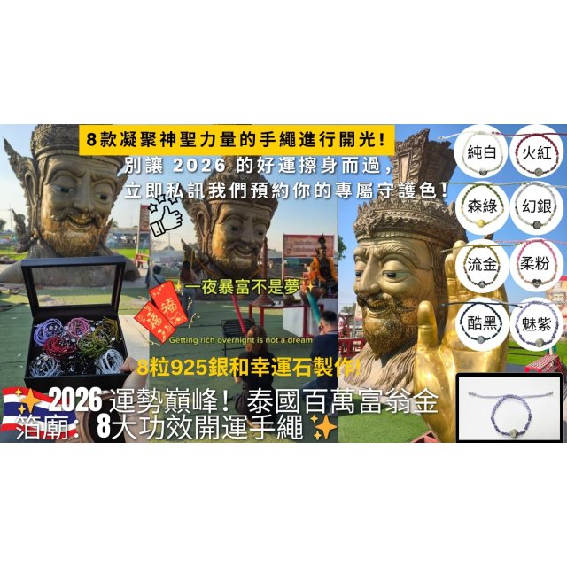 2026 運勢巔峰!泰國百萬富翁金箔廟:八大願力開運手繩 - CF0325