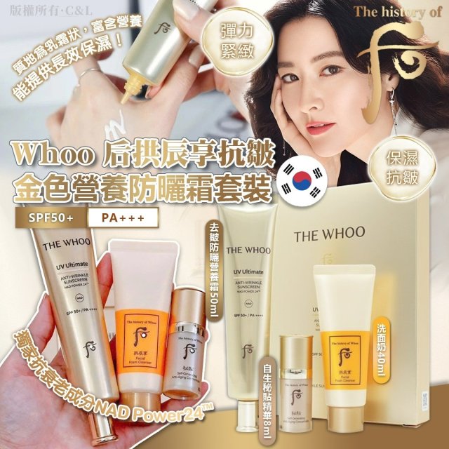 2026 4月韓國連線 韓國 Whoo 后 拱辰享 UV抗皺金色營養防曬霜套裝(新版)