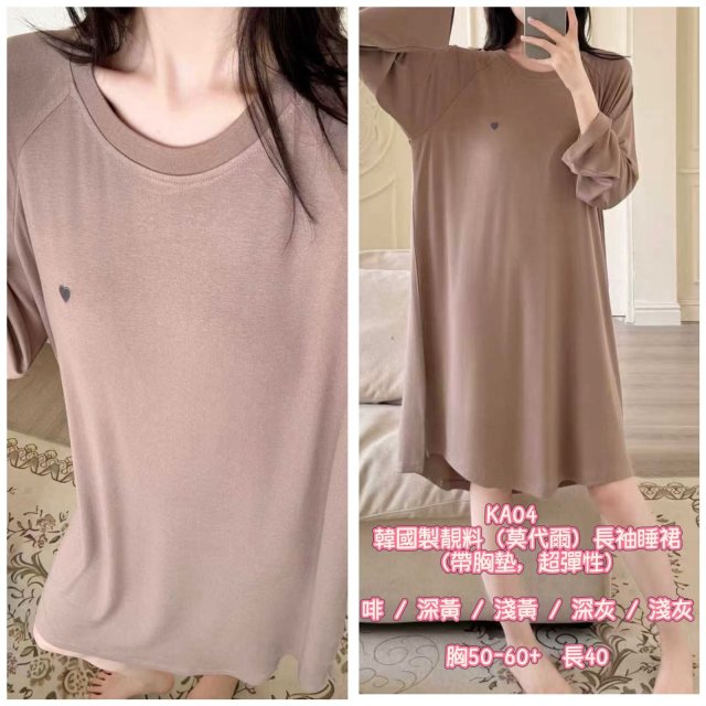 2025 9月韓國連線 韓國製靚料(莫代爾)長袖睡裙(帶胸墊,超彈性)