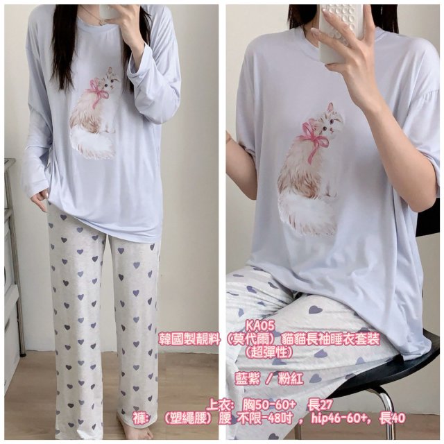 2025 9月韓國連線 韓國製靚料(莫代爾)貓貓長袖睡衣套裝(超彈性)