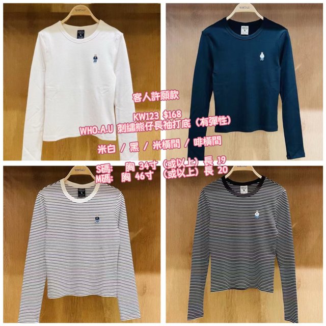 2025 9月韓國連線 WHO.A.U 刺繡熊仔長袖打底(有彈性)