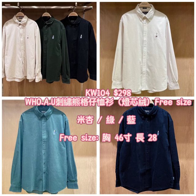 2025 9月韓國連線 WHO.A.U刺繡熊格仔恤衫(燈芯絨)Free size