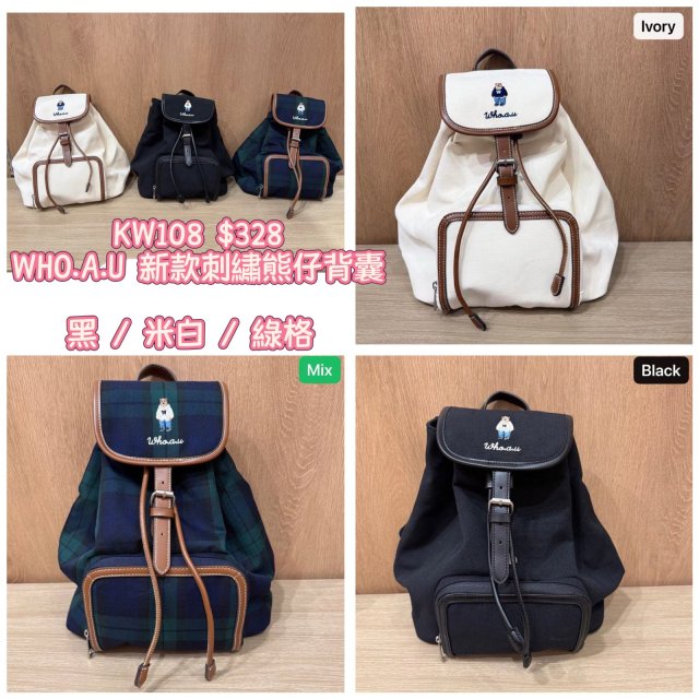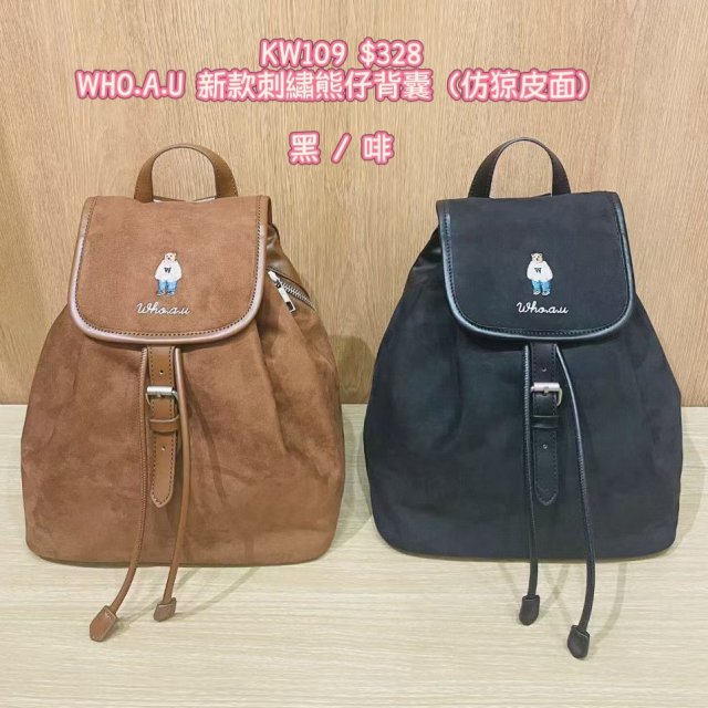 2025 9月韓國連線 WHO.A.U 新款刺繡熊仔背囊(仿猄皮面)