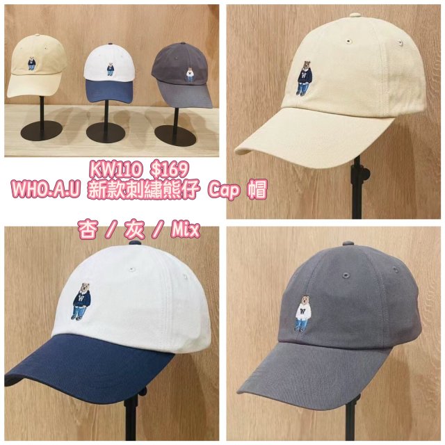 2025 9月韓國連線 WHO.A.U 新款刺繡熊仔 Cap 帽
