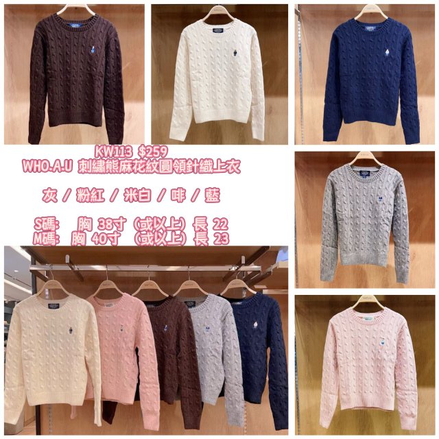 2025 9月韓國連線 WHO.A.U 刺繡熊麻花紋圓領針織上衣