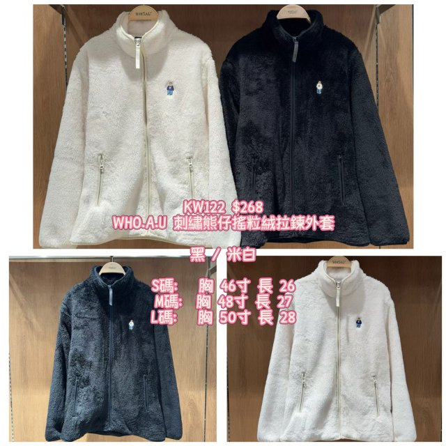 2025 9月韓國連線 WHO.A.U 刺繡熊仔搖粒絨拉鍊外套