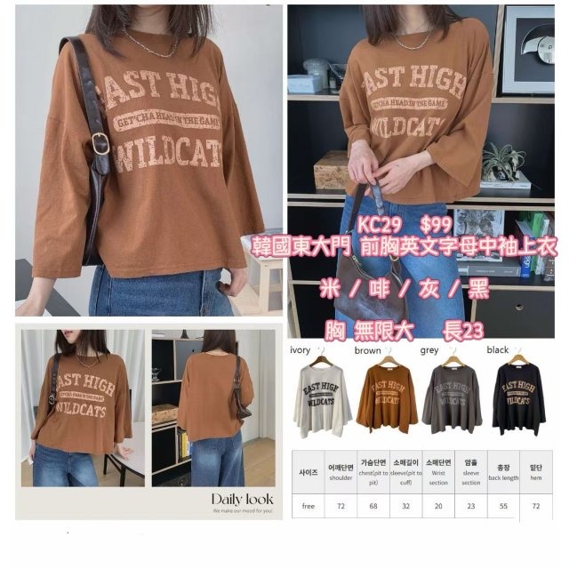 2025 9月韓國連線 韓國東大門 前胸英文字母中袖上衣