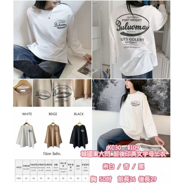 2025 9月韓國連線 韓國東大門 前後印英文字母上衣