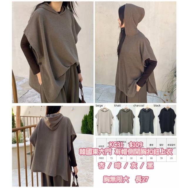 2025 9月韓國連線 韓國東大門 有帽側開胸扣鈕上衣