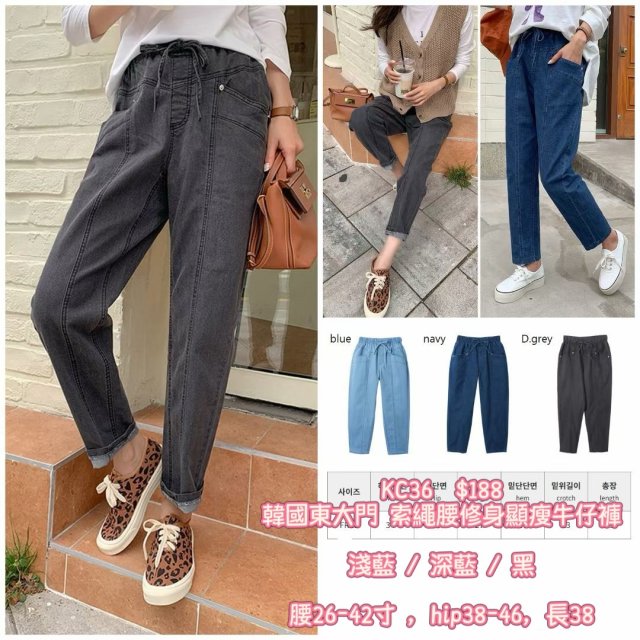 2025 9月韓國連線 韓國東大門 索繩腰修身顯瘦牛仔褲