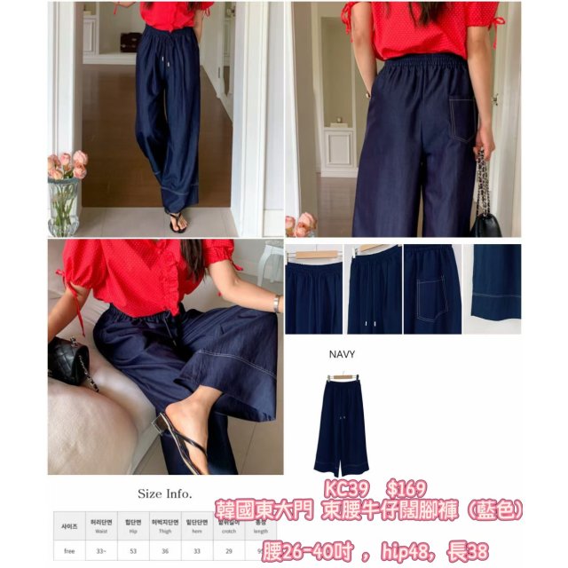 2025 9月韓國連線 韓國東大門 束腰牛仔闊腳褲(藍色)