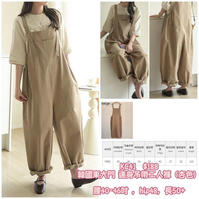 2025 9月韓國連線 韓國東大門 連身吊帶工人褲(杏色)