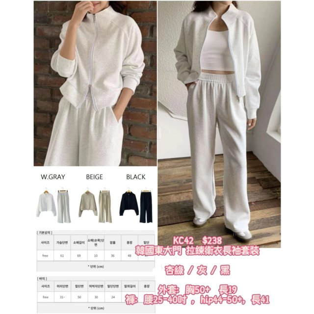 2025 9月韓國連線 韓國東大門 拉鍊衛衣長袖套裝
