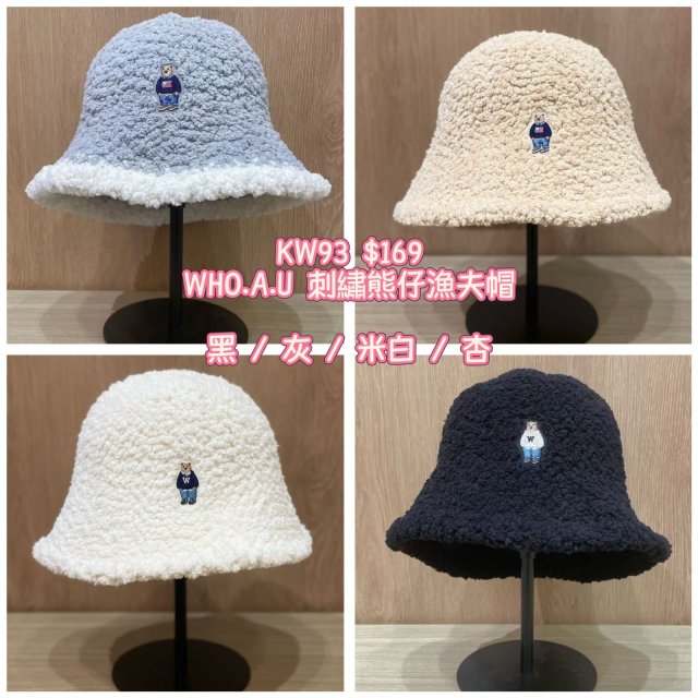 2025 9月韓國連線 WHO.A.U 刺繡熊仔漁夫帽