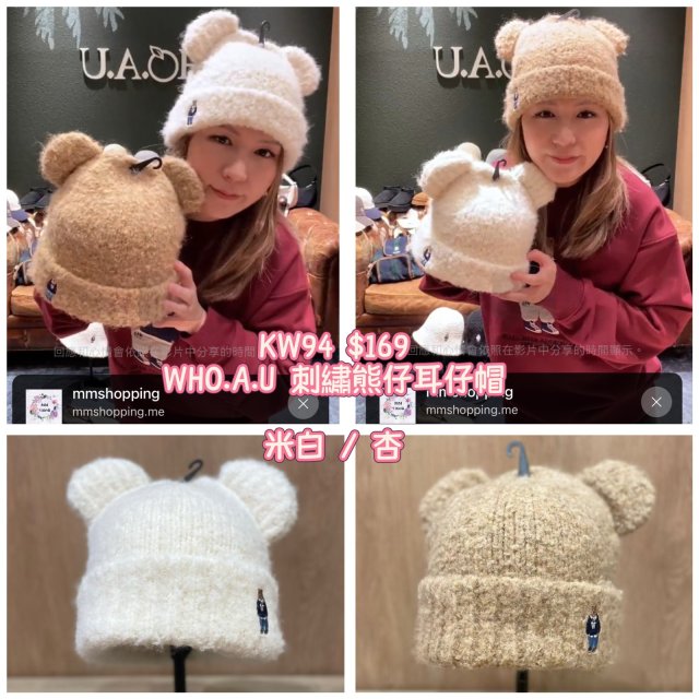2025 9月韓國連線 WHO.A.U 刺繡熊仔耳仔帽
