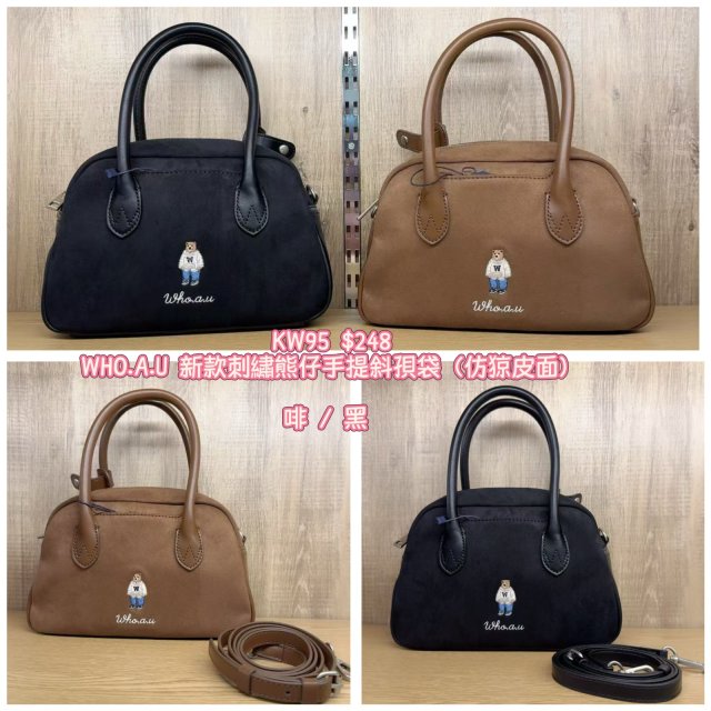 2025 9月韓國連線 WHO.A.U 新款刺繡熊仔手提斜孭袋(仿猄皮面)