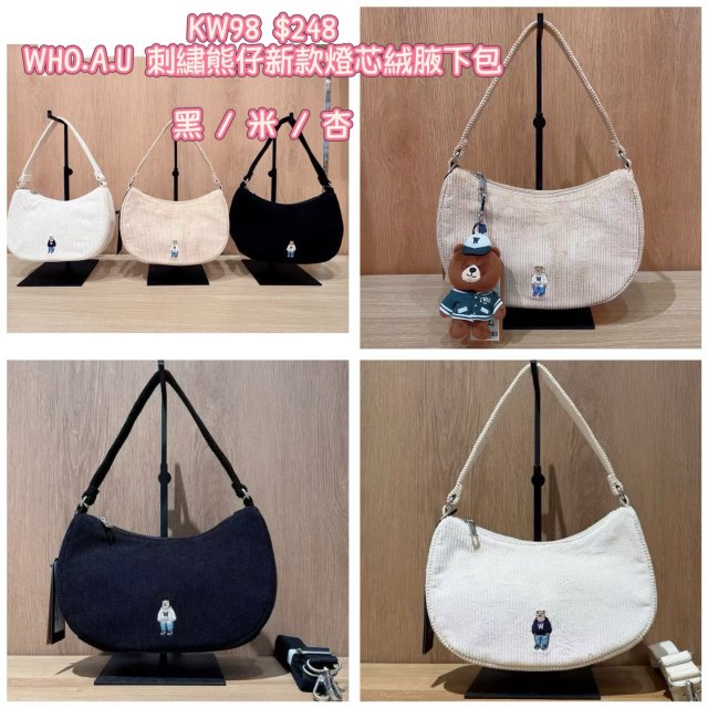 2025 9月韓國連線 WHO.A.U 刺繡熊仔新款燈芯絨腋下包