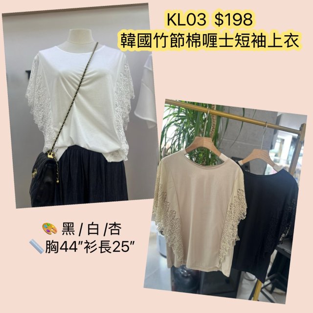 2026 4月韓國連線 韓國竹節棉網邊袖短袖上衣