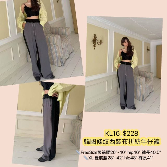2026 4月韓國連線 韓國條紋西裝布拼紡牛仔褲