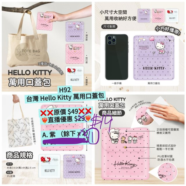 (6月25直播) 台灣 Hello Kitty 萬用口蓋包