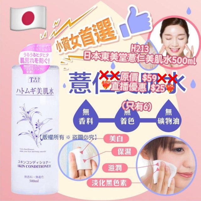 (6月25直播) 日本東美堂薏仁美肌水500ml