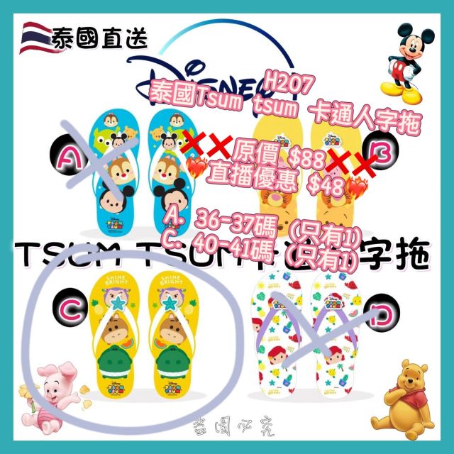 (6月25直播) 泰國Tsum tsum 卡通人字拖