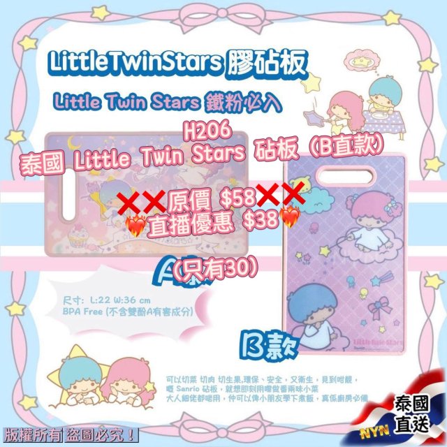 (6月25直播) 泰國 Little Twin Stars 砧板(B直款)