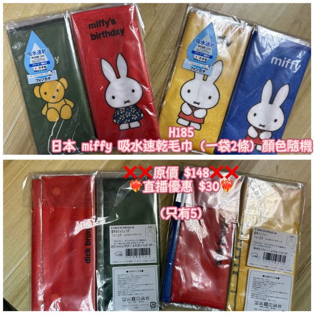 (6月25直播) 日本 miffy 吸水速乾毛巾(一袋2條)顏色隨機