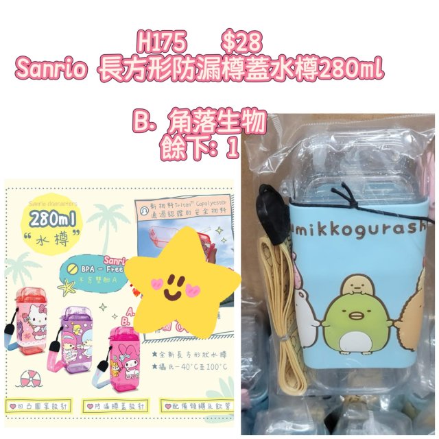 (6月25直播) Sanrio 長方形防漏樽蓋水樽280ml