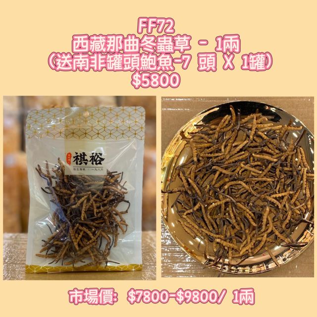(1月25裕生) 西藏那曲冬蟲草 - 1兩 (送南非罐頭鮑魚-7 頭 X 1罐)