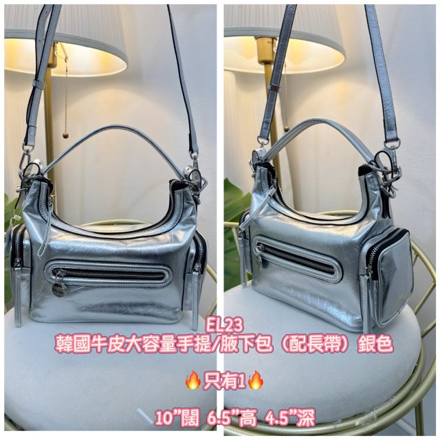 (2月5直播) 韓國牛皮大容量手提/腋下包(配長帶)銀色