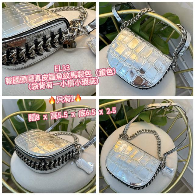 (2月5直播) 韓國頭層真皮鱷魚紋馬鞍包(銀色)
