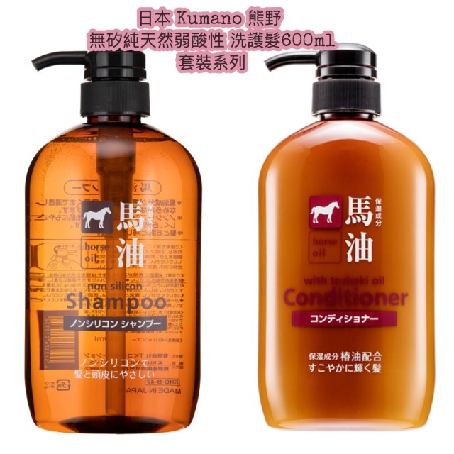 (10月17直播) 日本 Kumano 熊野 無矽純天然弱酸性 洗頭水 + 護髮素 600ml 套裝