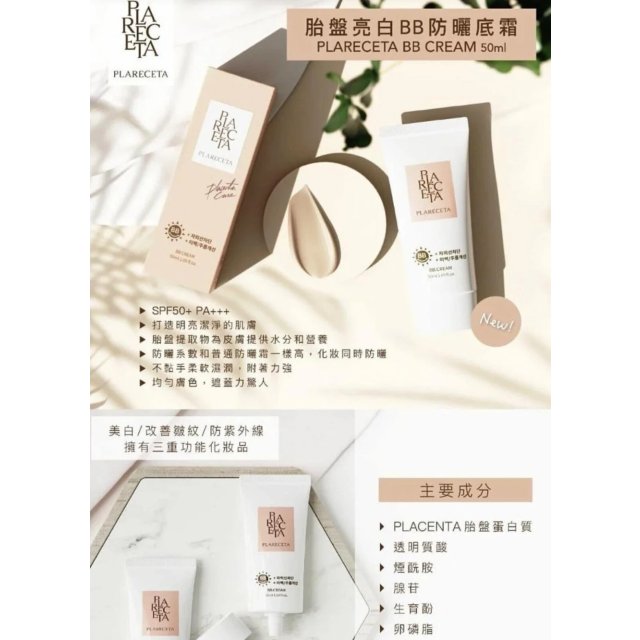 (7月1直播) 韓國 Plareceta BB Cream 胎盤亮白BB防曬霜 SPF50+ PA+++ 50ml