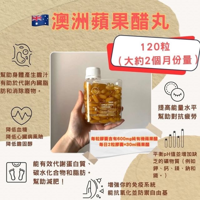 (7月1直播) 澳洲 TONIK No.2 有機蘋果醋膠囊120粒