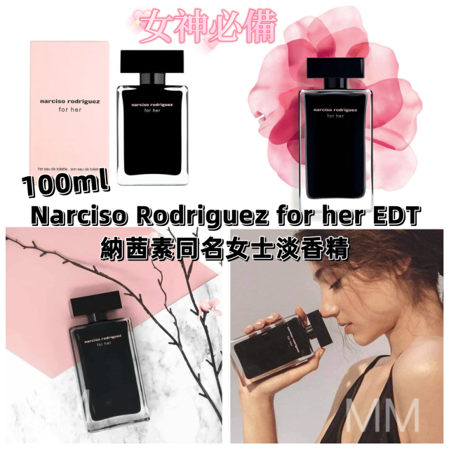 (7月4直播) NARCISO RODRIGUEZ FOR HER EDT SPRAY 納茜素同名女士淡香精 100ml (粉盒黑瓶)