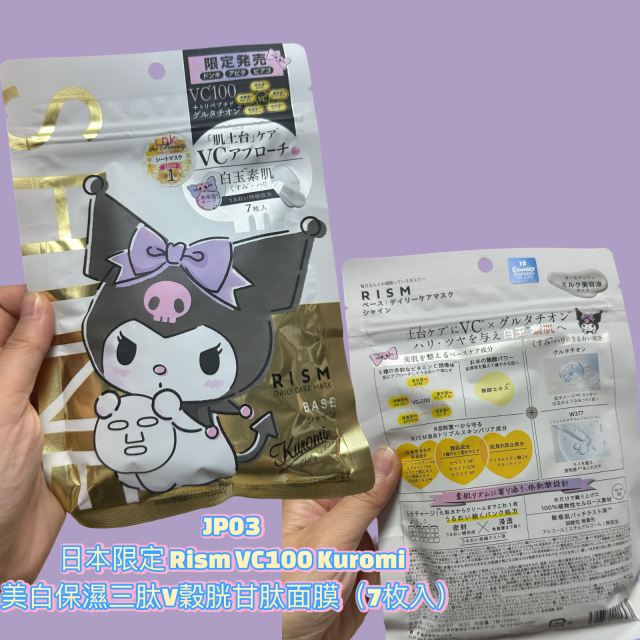 (11月07直播) 日本限定 Rism VC100 Kuromi 美白保濕三肽V穀胱甘肽面膜(7枚入)