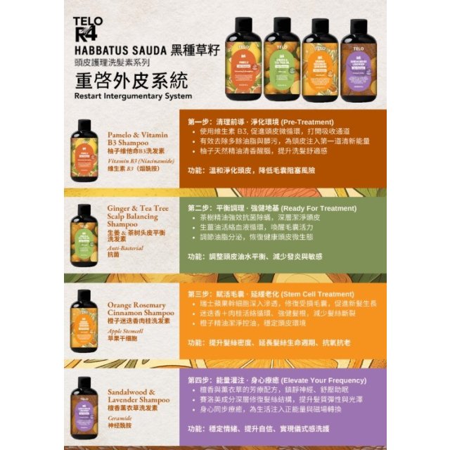 (1月3直播) 馬來西亞 Telo R4 全面頭皮護髮系列All in OneSET(共4款各一) 送旅行迷你裝一套(共4款各一)