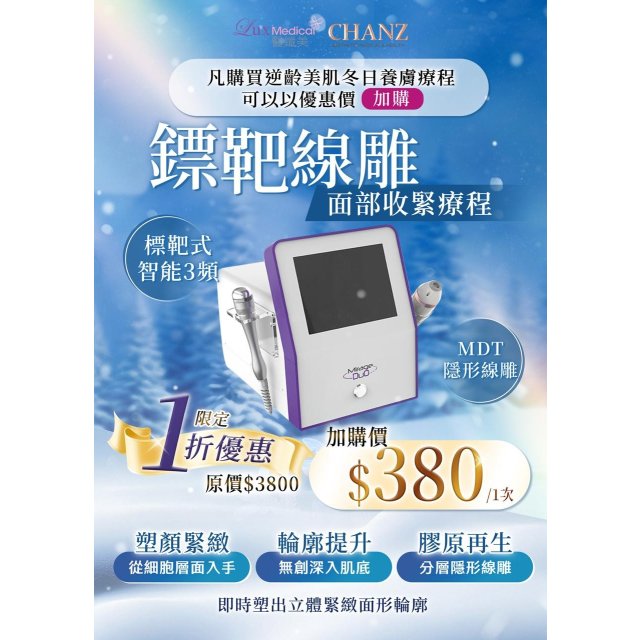 (12月4直播) Lux Medical 鏢靶線雕面部收緊療程(只限購買LU07逆齡美肌冬日養膚療程才可加購)