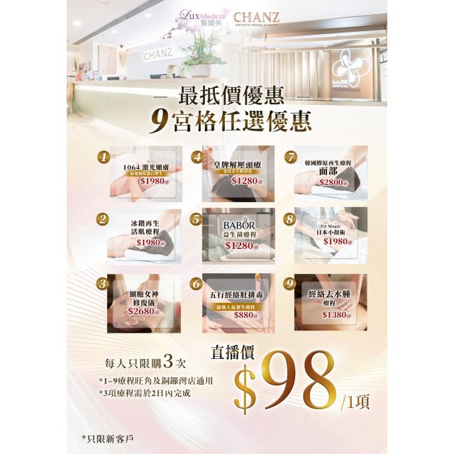 (12月4直播) Lux Medical 九宮格療程(3次)