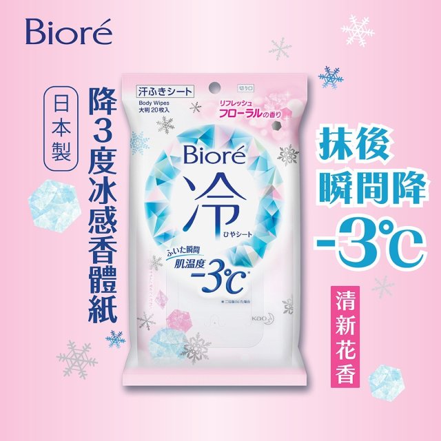 (10月8直播) 日本 花王 BIORE 降3度冰感香體紙 (清爽花香) 20枚