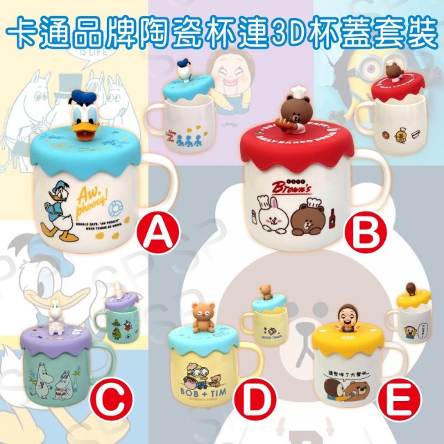 卡通品牌陶瓷杯連3D杯蓋套裝(380ml) - CF1111