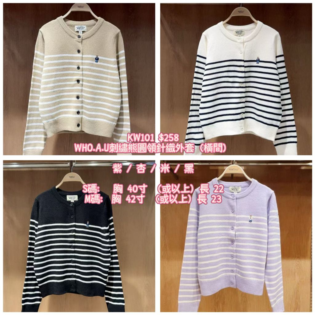 2025 9月韓國連線 WHO.A.U刺繡熊圓領針織外套(橫間)