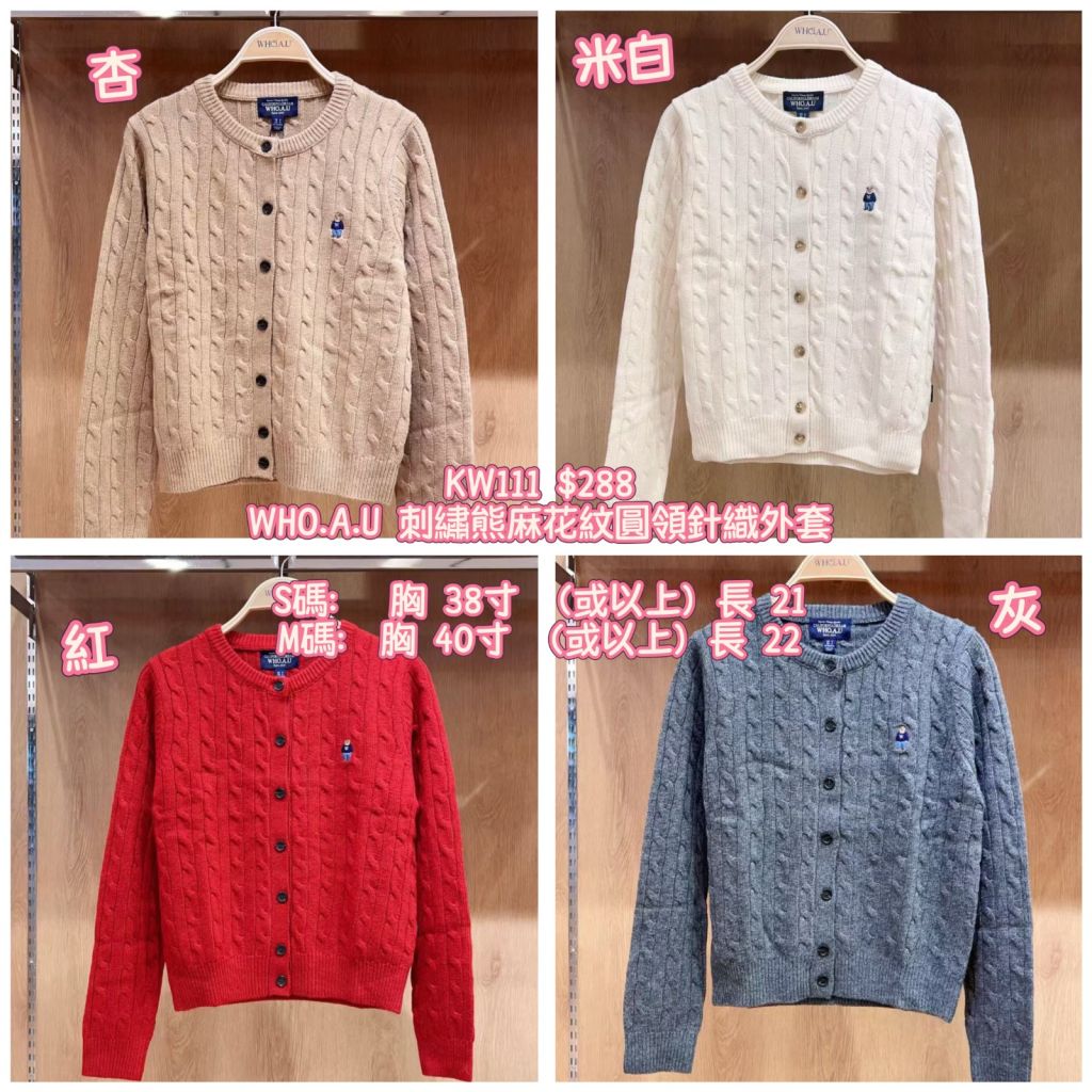 WHO.A.U 刺繡熊麻花紋圓領針織外套