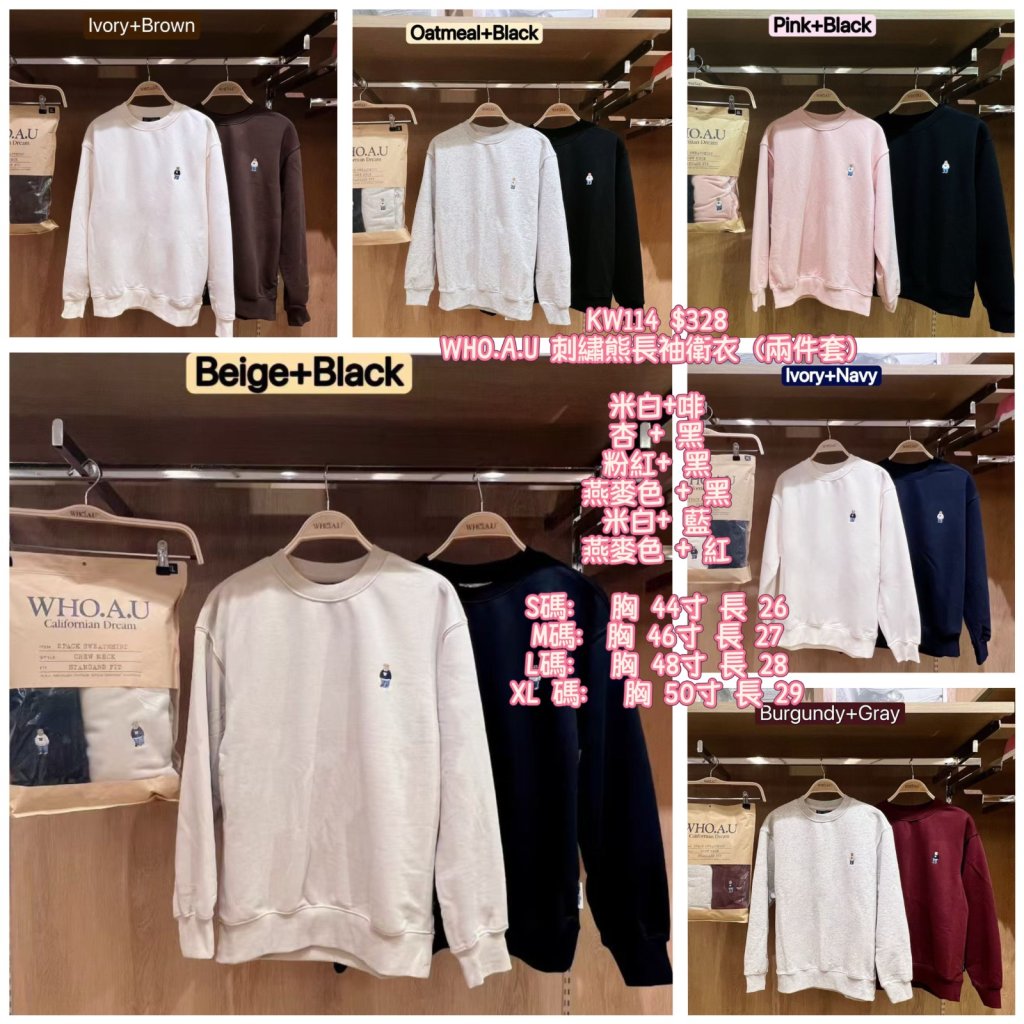 2025 9月韓國連線 WHO.A.U 刺繡熊長袖衛衣(兩件套)
