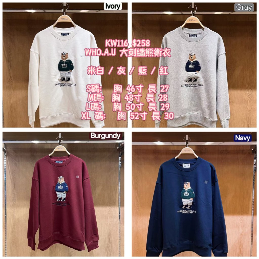 2025 9月韓國連線 WHO.A.U 大刺繡熊衛衣