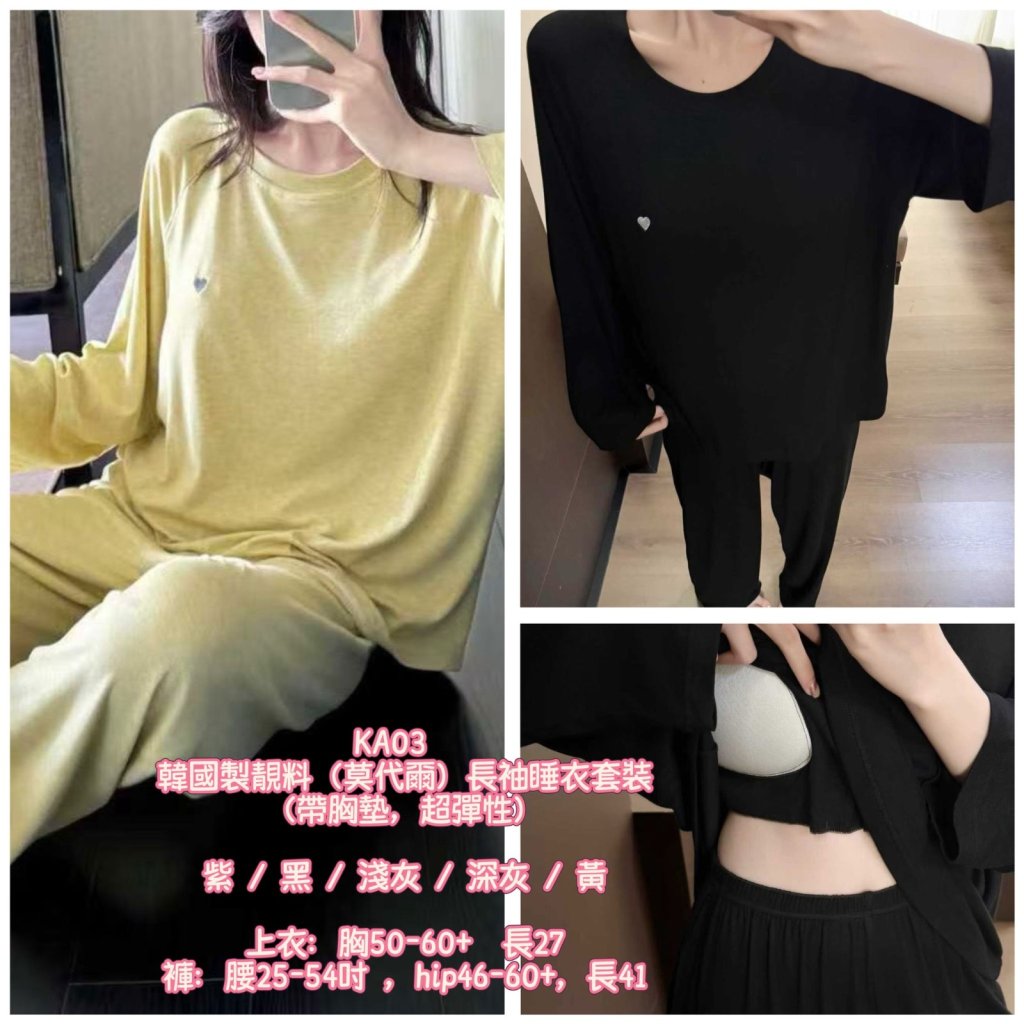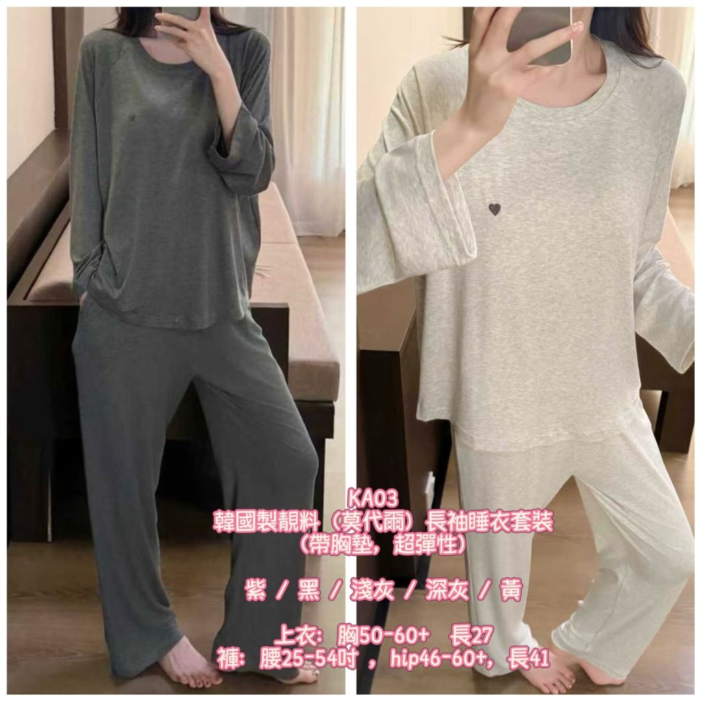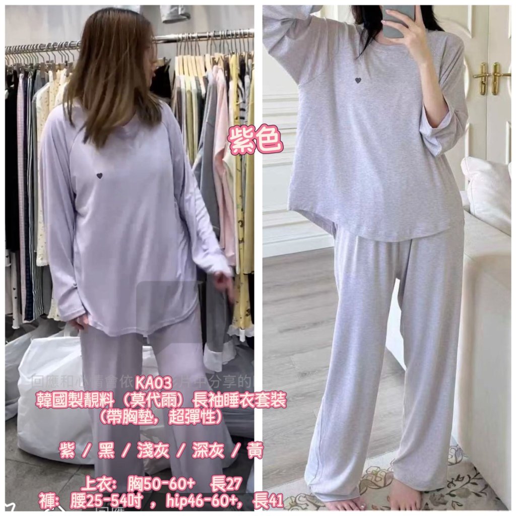 2025 9月韓國連線 韓國製靚料(莫代爾)長袖睡衣套裝(帶胸墊,超彈性)