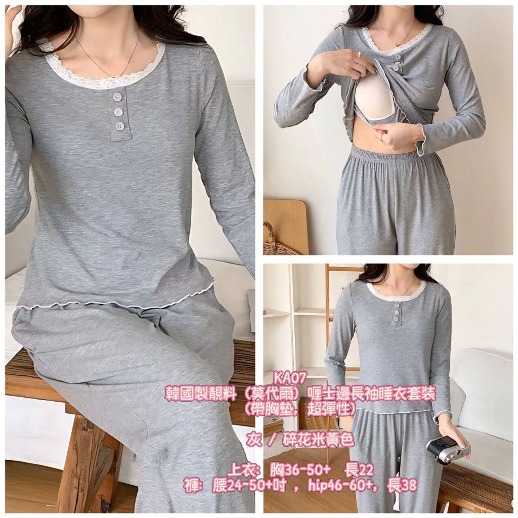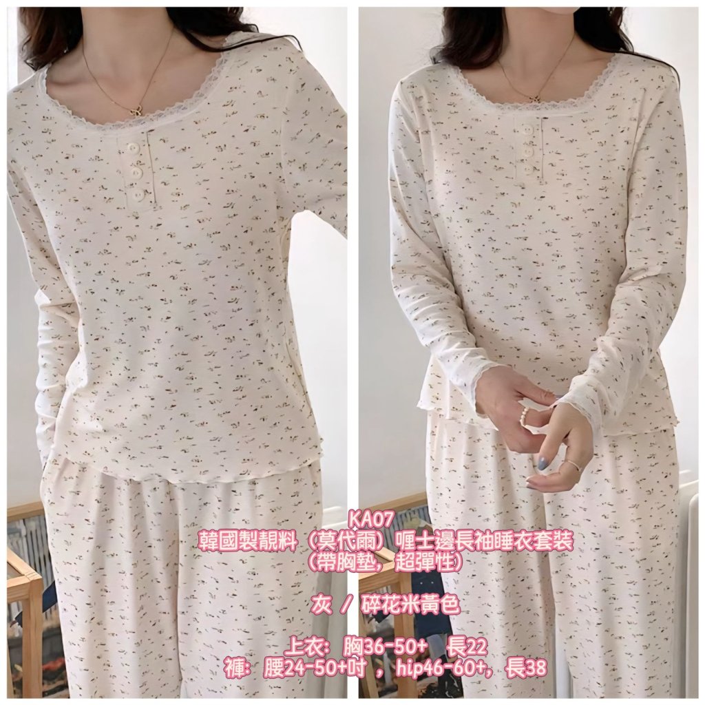2025 9月韓國連線 韓國製靚料(莫代爾)喱士邊長袖睡衣套裝(帶胸墊,超彈性)