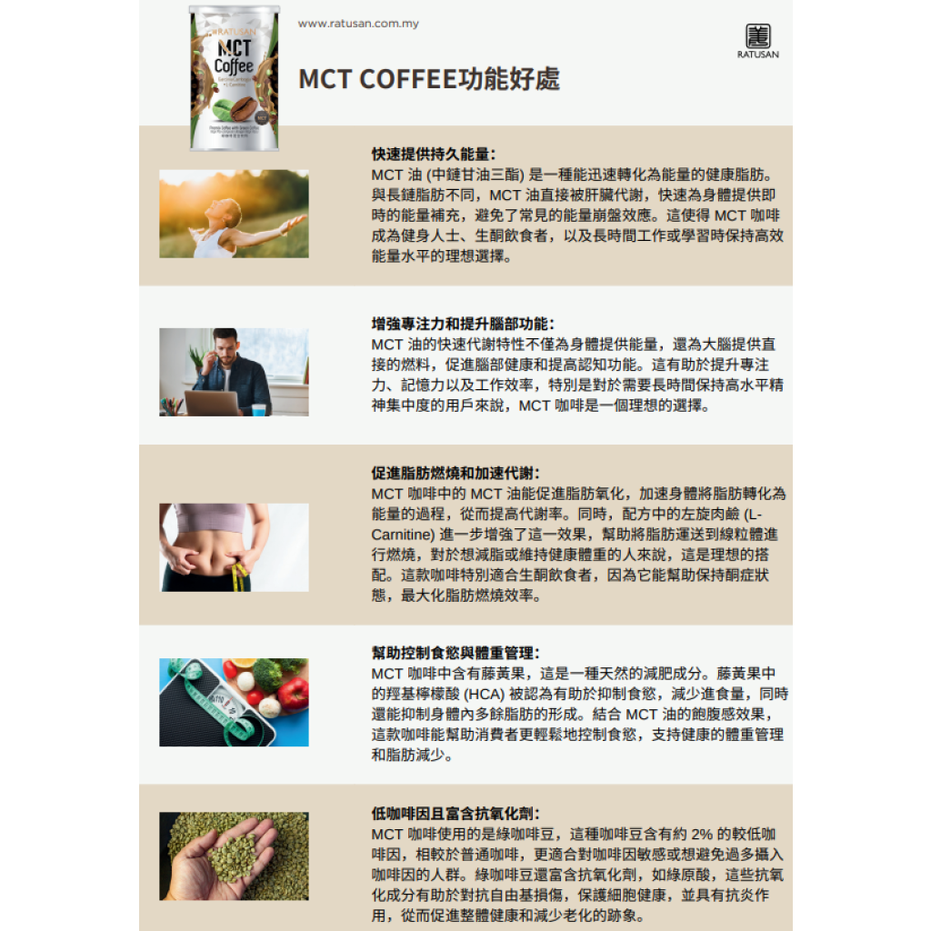 (8月5直播) 馬來西亞 RATUSAN MCT 咖啡 - 綠咖啡混合飲料 300g