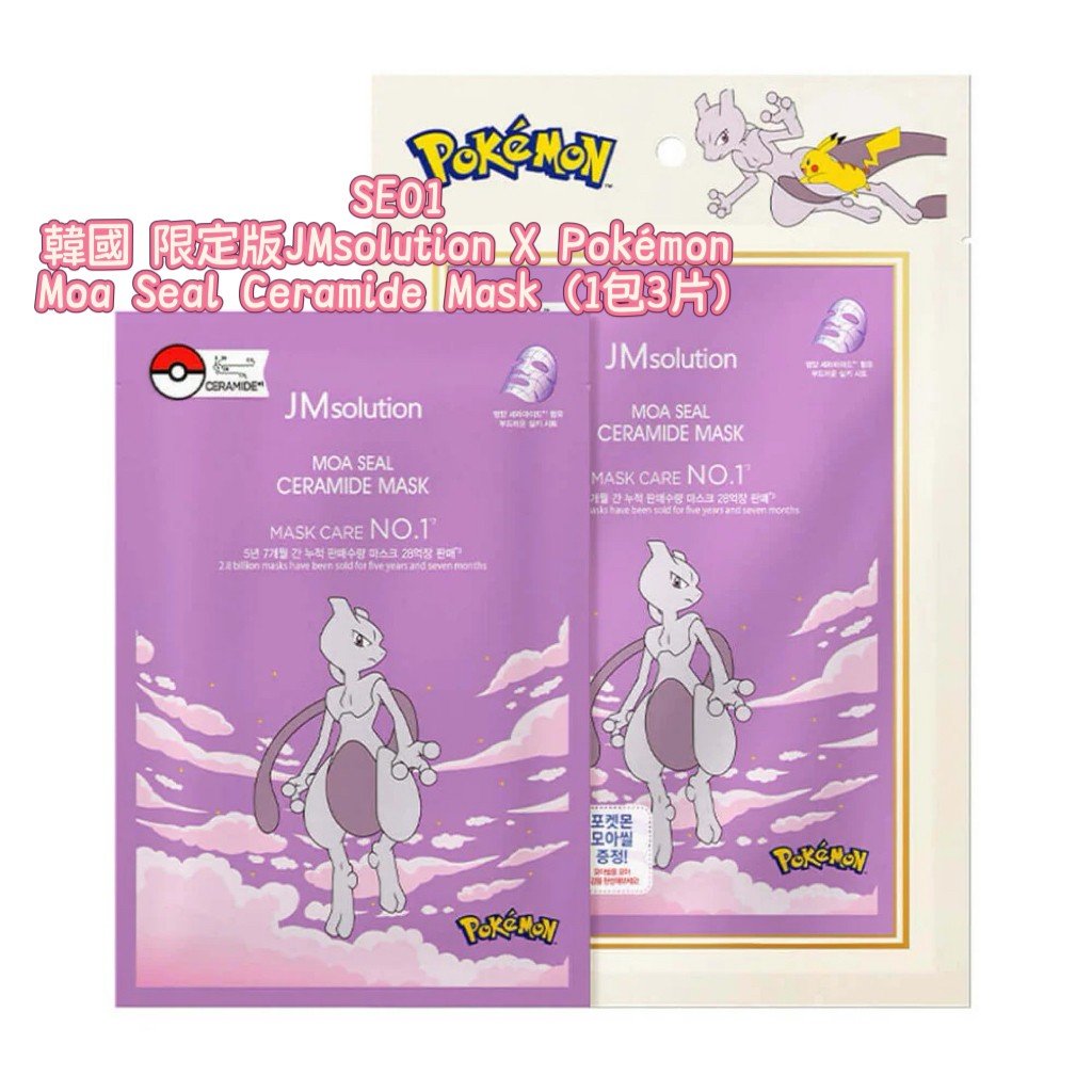 (10月8直播) 韓國 限定版JMsolution X Pokémon Moa Seal Ceramide Mask(1套3片)